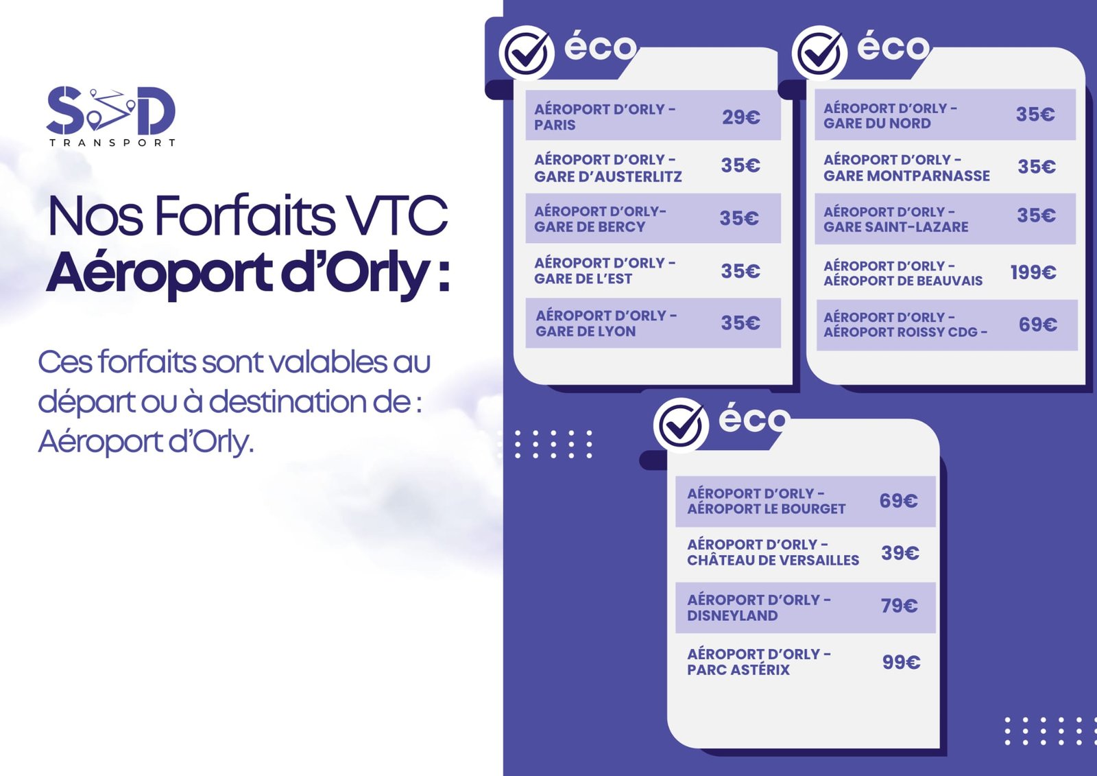 Transports privés et professionnels pour l’aéroport d’orly